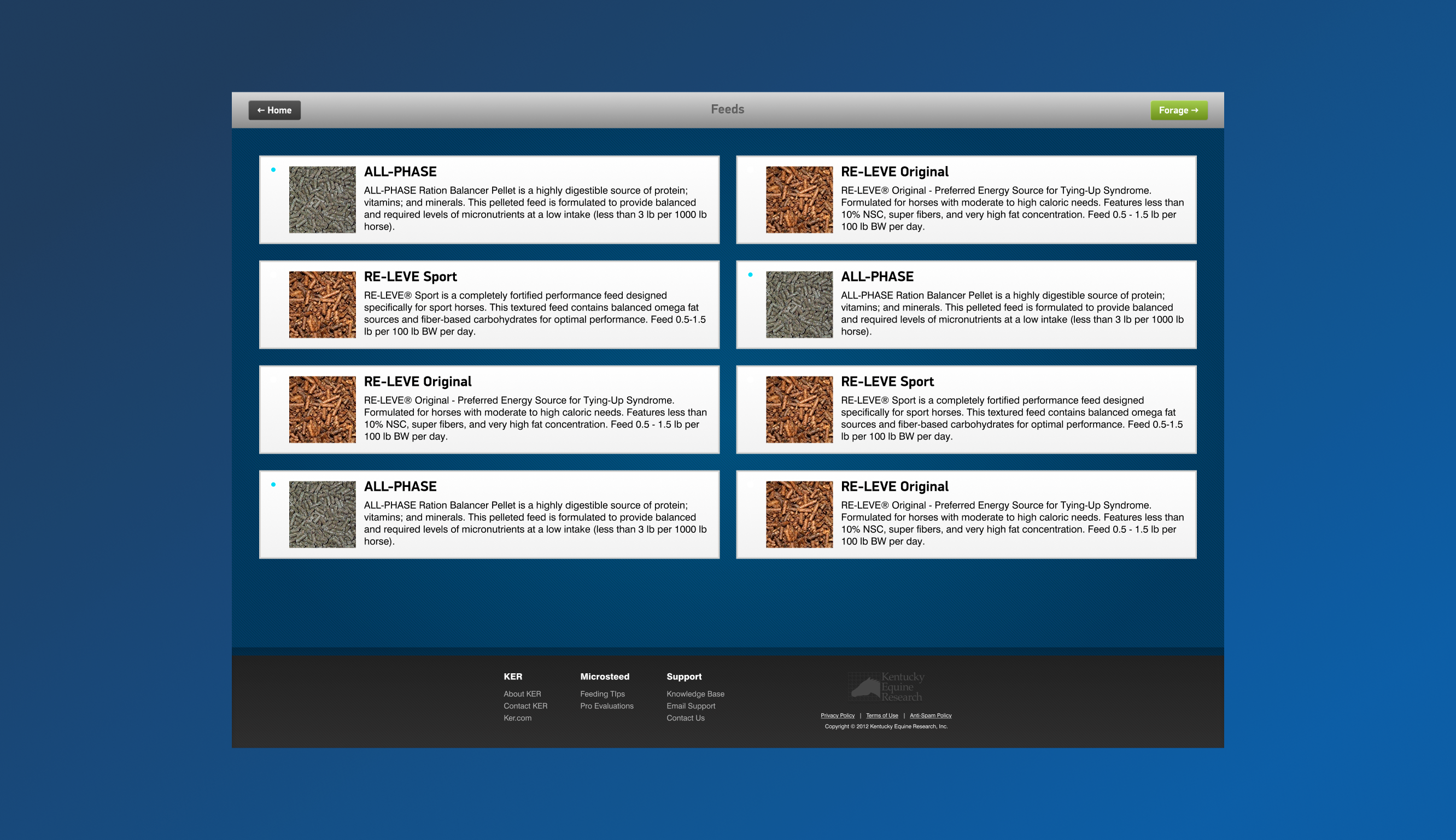 Design and research for the MicroSteed Ration Wizard followed a user-centered process despite our fast timeline. We conducted a few informal interviews with target users:  horse owners, barn managers, and equine nutritionist. Through these conversations, we learned what users would want from a feeding tool – simplicity, trustworthiness, and clear, actionable recommendations. Using this input, I sketched the initial user flow and wireframes for the wizard’s multi-step interface. We iterated quickly with feedback from KER’s nutrition experts to ensure the questions asked were relevant and not overly intrusive. For example, we reduced the number of inputs by making some behind-the-scenes assumptions to keep the flow moving (if a user didn’t know a detail, the system could use average values). We also included helpful microcopy and tooltips wherever users might get stuck, based on common questions our interviewees had raised. In parallel, for the Shopify site redesign, we built several different versions focusing on key pages (homepage, product page, cart, checkout) and reviewed them with internal stakeholders who were also equine customers themselves.