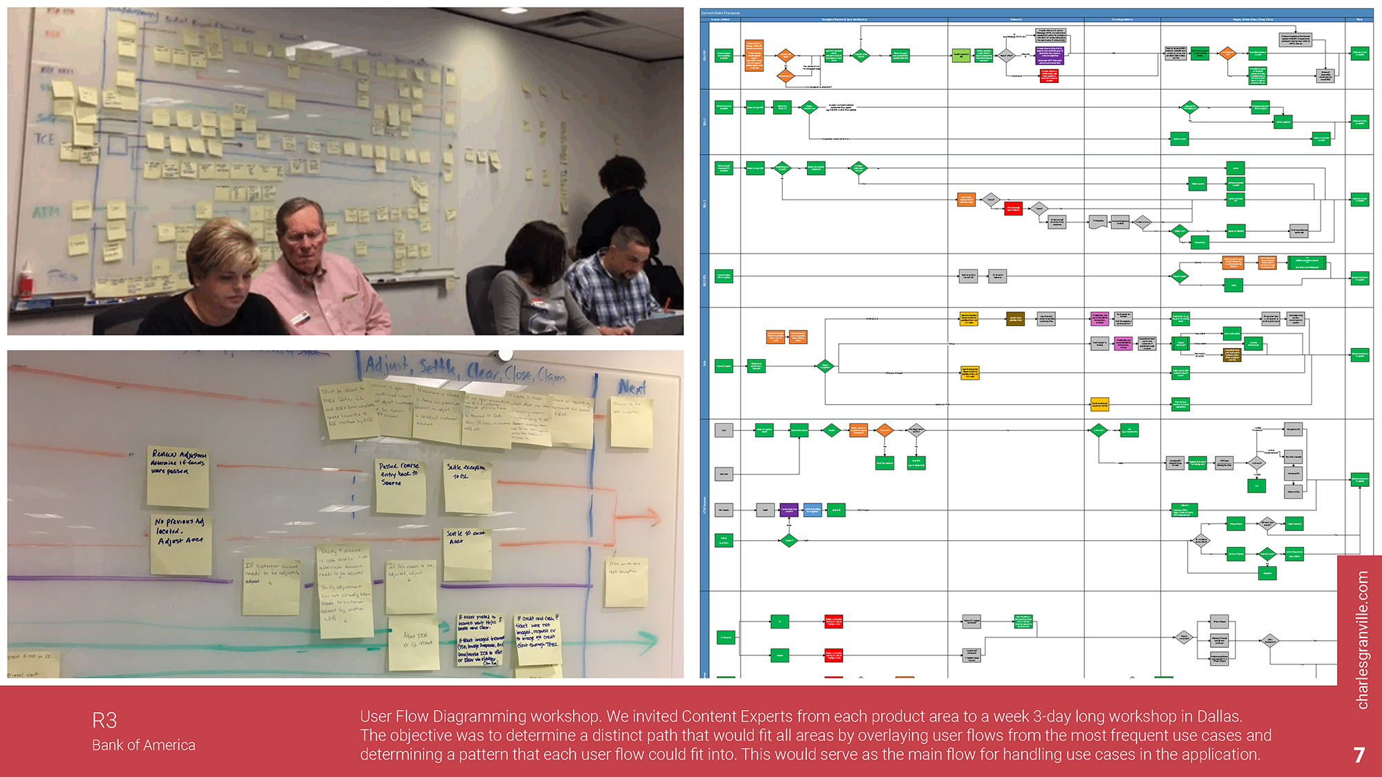 The groundwork research itself consisted of many on-site user interviews, environmental and ethnographic observations, and contextual inquiries. We conducted these research methods in multiple spaces, including ATM, check and electronic research (Atlanta and Dallas), financial center vaults, business safe operations sites (Jacksonville), and paper processing and storage (Atlanta and St. Louis).