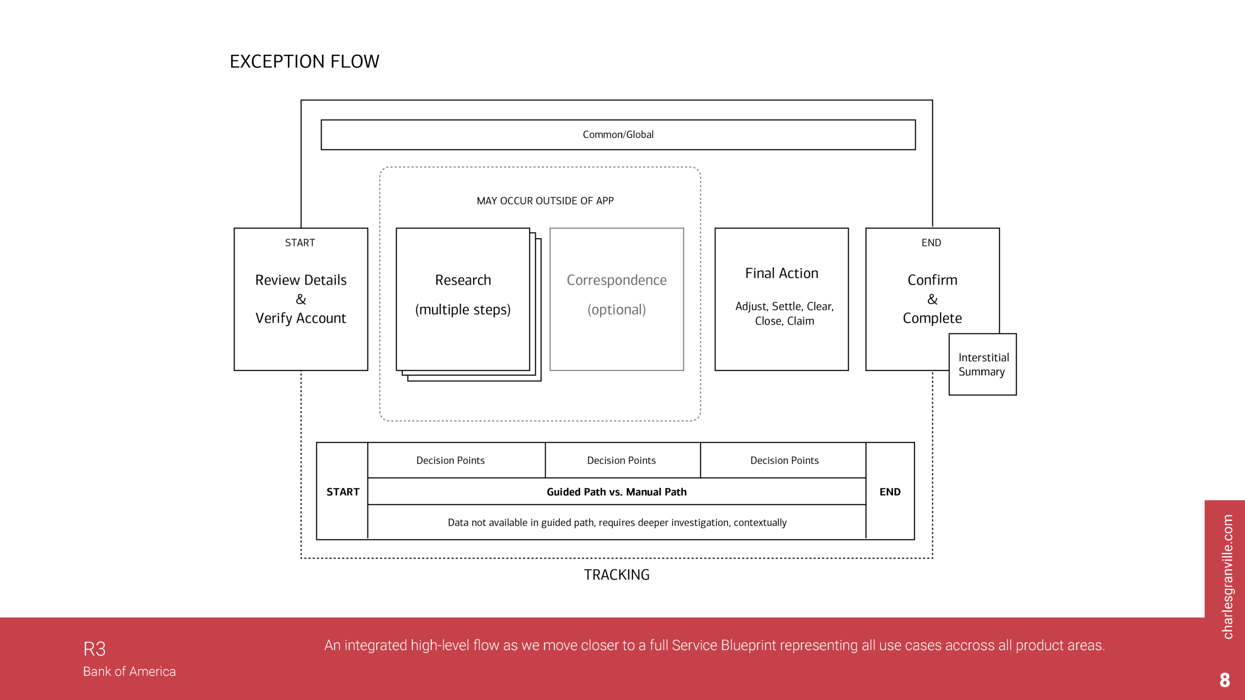 The research was followed up with a workshop in Dallas with the goal of identifying matching patterns in process flows with entities that were already in the R3 system. We invited user’s and content experts from different sites to participate in helping achieve our goal and were able to create a User Flow Diagram, that matched user processes to similar stages. From there, we were able to conceptualize a new more straightforward approach to resolving transaction issues in the R3 application.