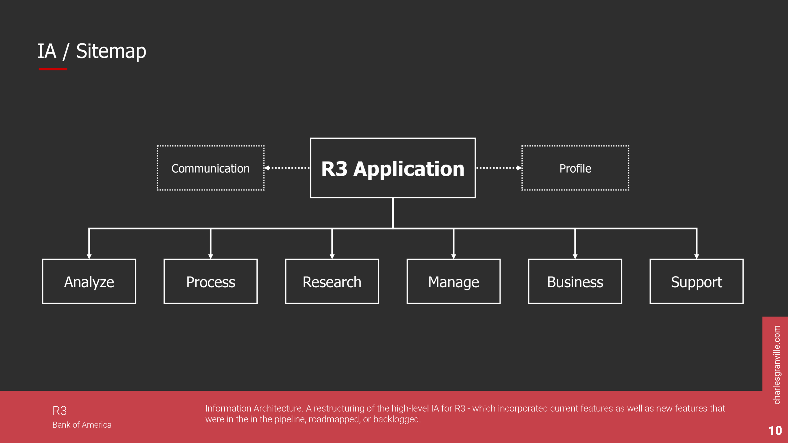 Using the personas as a reference, we were able to separate the application into distinctive areas based on the user’s areas and responsibilities. We then were able to further determine the sub-areas of the architecture and even poly-hierarchical sections in the application.