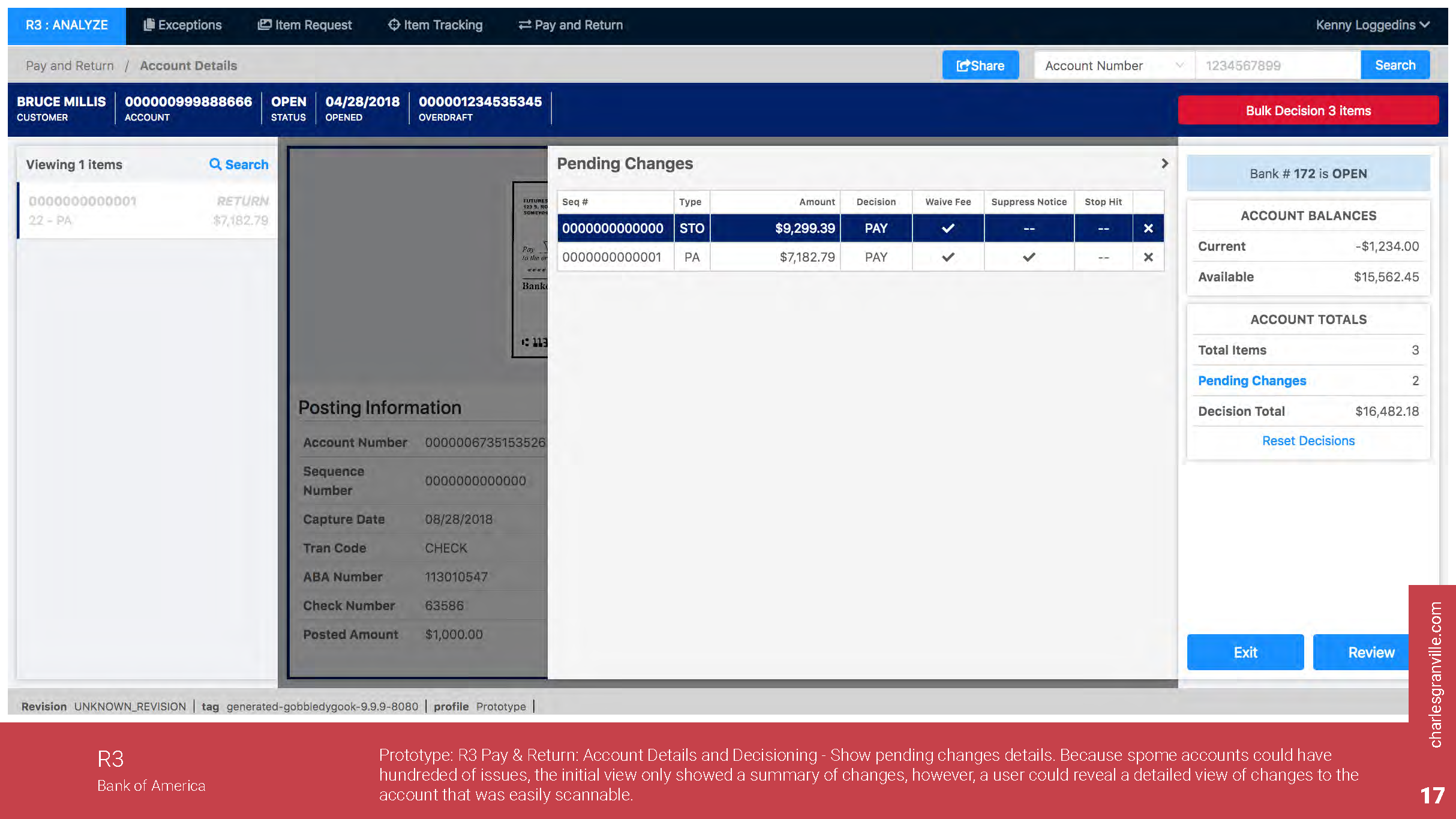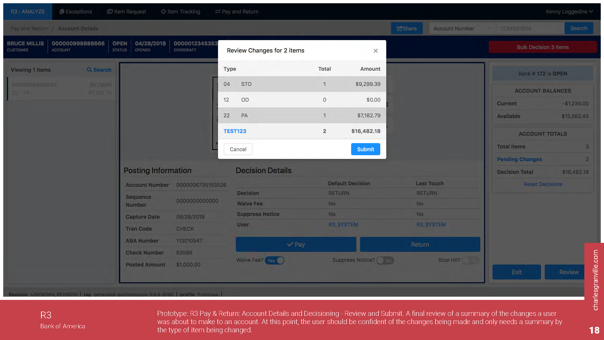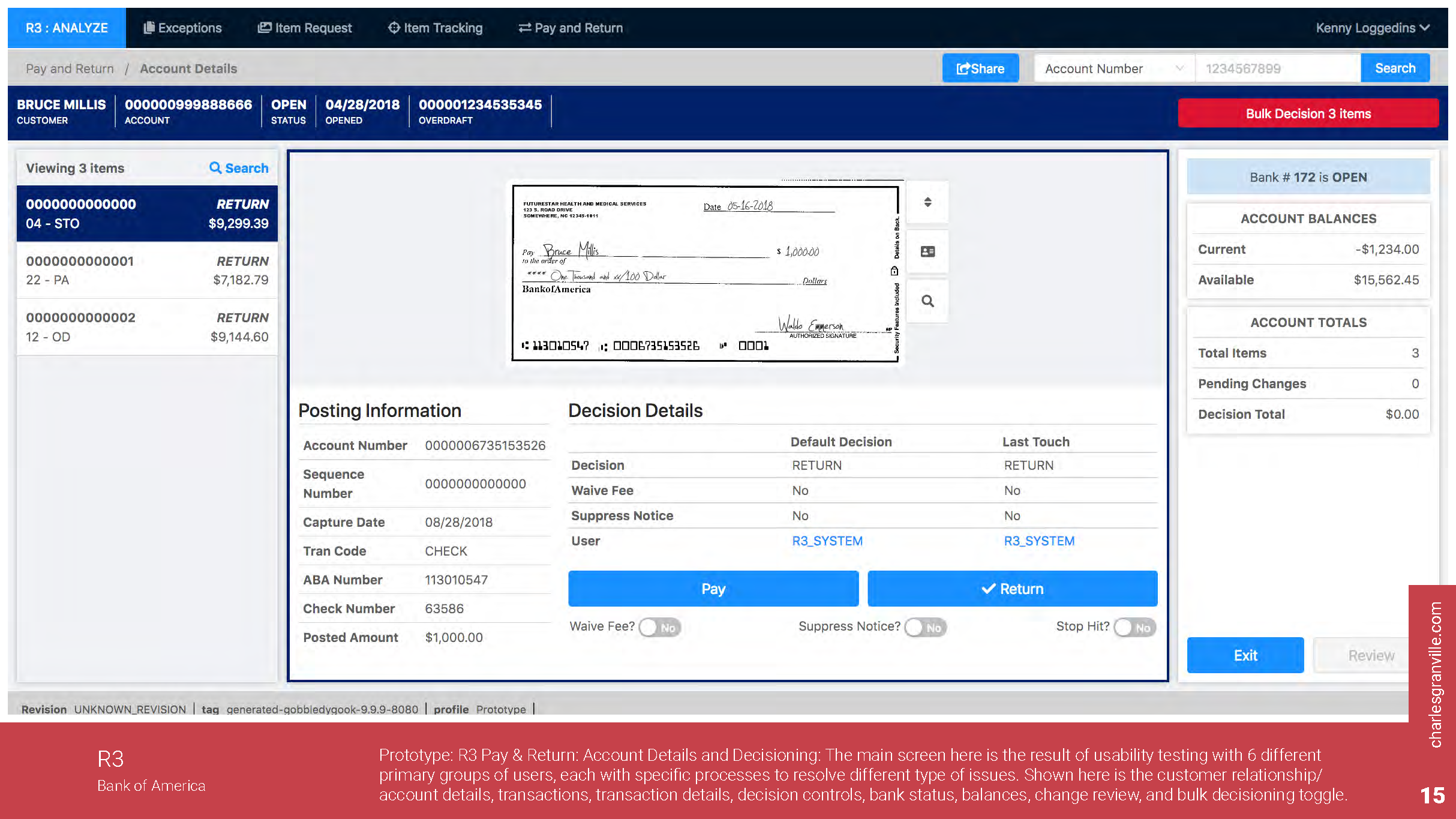 During the design of a particular feature being added to R3 that provided that ability of different business areas to decide whether to Pay or Return transactions that arrive but there is not any money in their account, usability testing was conducted to gather strong data-driven evidence of the need for design changes in the application.